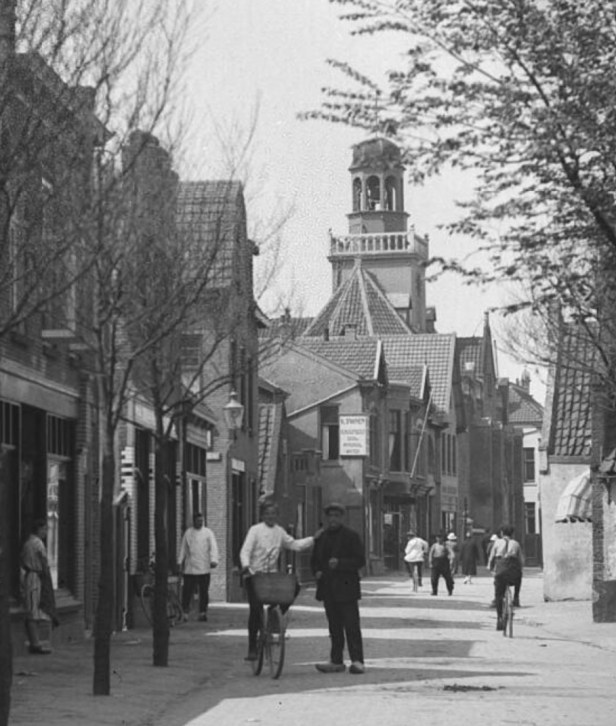 Tafereel van een – althans op de foto autoloos – stukje Hoofdstraat in Noordwijk aan Zee. Het reclamebord midden op de foto is jammergenoeg niet te lezen: Van Wely? De Witt? Toonen? Hollander?