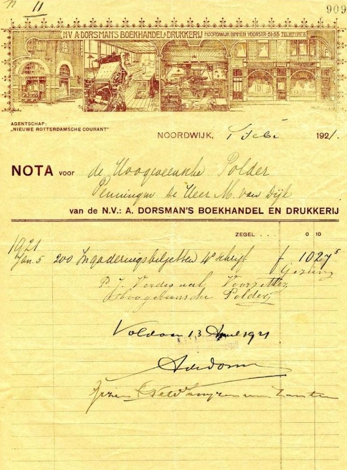 Op marktplaats is een serie oude nota’s te koop van voormalige Noordwijkse ondernemers. Zoals hier drie rekeningen van Adriaan Dorsman aan verschillende polderbesturen.