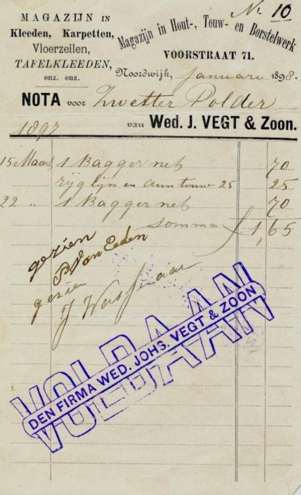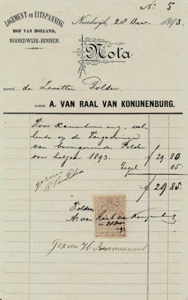 Nog twee nota’s: één van de Wed. J. Vegt en Zoon én één van de uitbater van Hof van Holland, A. van Raal van Konijnenburg, die ook nog eens een begin had gemaakt met Badhotel Konijnenburg.