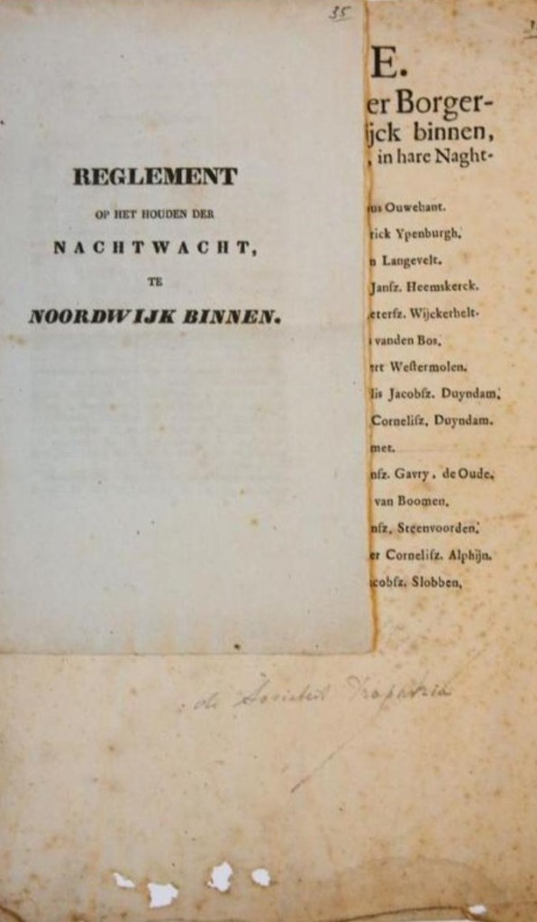 Bijgevoegd: `Reglement op het houden der nachtwacht te Noordwijk Binnen’. Dit alles te koop op marktplaats.