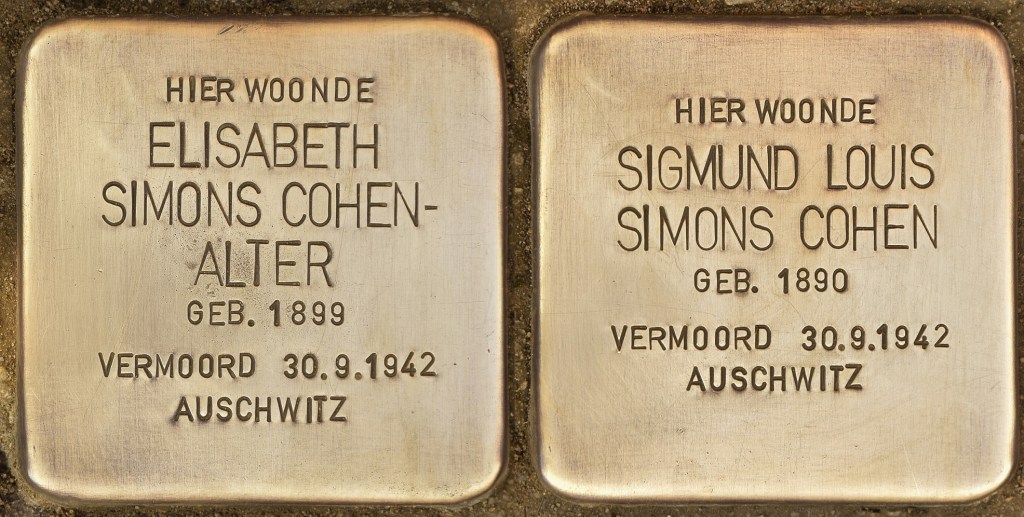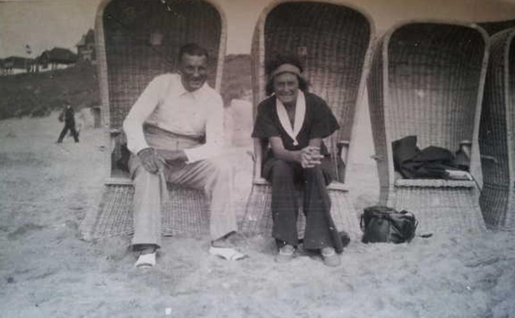 Elisabeth Alter op het strand in Noordwijk in 1931. Met een onbekende persoon. Elisabeth zou later trouwen met Sigmund Louis Simons Cohen. Het echtpaar woonde aan de Mauritsstraat 93 in Utrecht en werd daar door de Duitse bezetter gearresteerd. Naar verluidt zijn zij op 10 augustus, 1942 via Westerbork naar Auschwitz getransporteerd. Elisabeth en Simon Louis werden daar op 30 september 1942 om het leven gebracht. Voor hun oude woonhuis in Utrecht zijn 2 struikelstenen geplaatst.