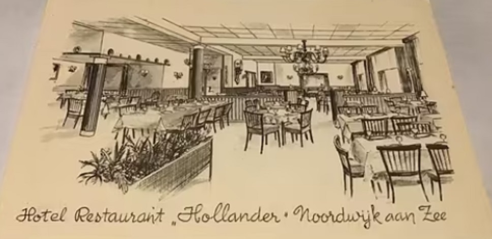 Binnen in was het om de styling het mooiste gebouw…langs het gebouw aan de binnenkant liep ronde de cirkel van de kamers een balustrade dat vernuftig over was nagedacht…of ze net als de andere hotels een lift hadden lopen de herinneringen uit een…denk het wel want ze hadden veel kapitaal krachtige cliënten op oude leeftijd en slecht ter been… de hele bloemen wereld van exporteurs logeerden daar de hele zomer of gedeelte ervan…brede trappen omhoog en kamers die met de uitstraling waren blijven steken in de thirtees…maar je moet alles zien van de tijd in de fifties..,toen niemand aanstoot nam aan luxe of design of privacy of iets dergelijks uit onze tijd…toen was er een bepaalde vervlakking en de pedanterie van nu bestond niet…wel voor de oorlog toen Noordwijk voor de beau-monde een echte badplaats was..nu verworden tot de verwording zonder enige vorm van beleid of visie…te lang gezien als melk koe en de ondernemers moeilijk gemaakt en uit gesloten…de mooie architectonische hotel design komen allemaal uit het begin van de belle epoque…oude Hollander van Beelen en TappenBeck schenen hun licht op te hebben gedaan langs belgische en Franse kusten…met hulp van Jesse i think om dat er elementen inzitten van hotel Noordzee..de inrichting van meubilair hadden toen fifties geen kwaliteit en comfort…had men in de vervlakking van die tijd geen geld en idee over…mijn persoon kwam in alle dorpse hotels…veel weet ik nog….en veel niet meer paraat…maar het dorp had meer schwung en uitstraling…wat is blijven bestaan is het idee nu dat de grote horeca nog steeds de grootste lobby is in het spectrum van de dingen die gebeuren…en wellicht gebeuren moeten in de vaart van kust dorpen tegen de verpaupering….amen….t zei zo…