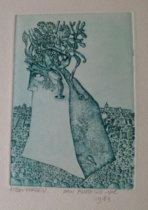 De Noordwijkse beeldend kunstenaar Ab Steenvoorden (1933-2010) stuurde eind 1982 – 40 jaar geleden – deze kaart aan zijn vriendenkring met de wens voor ‘een fantasievol 1983’. Ik parafraseer die wens naar die van mezelf: ik wens de lezers van dit blog graag ‘een fantasievol 2023!’