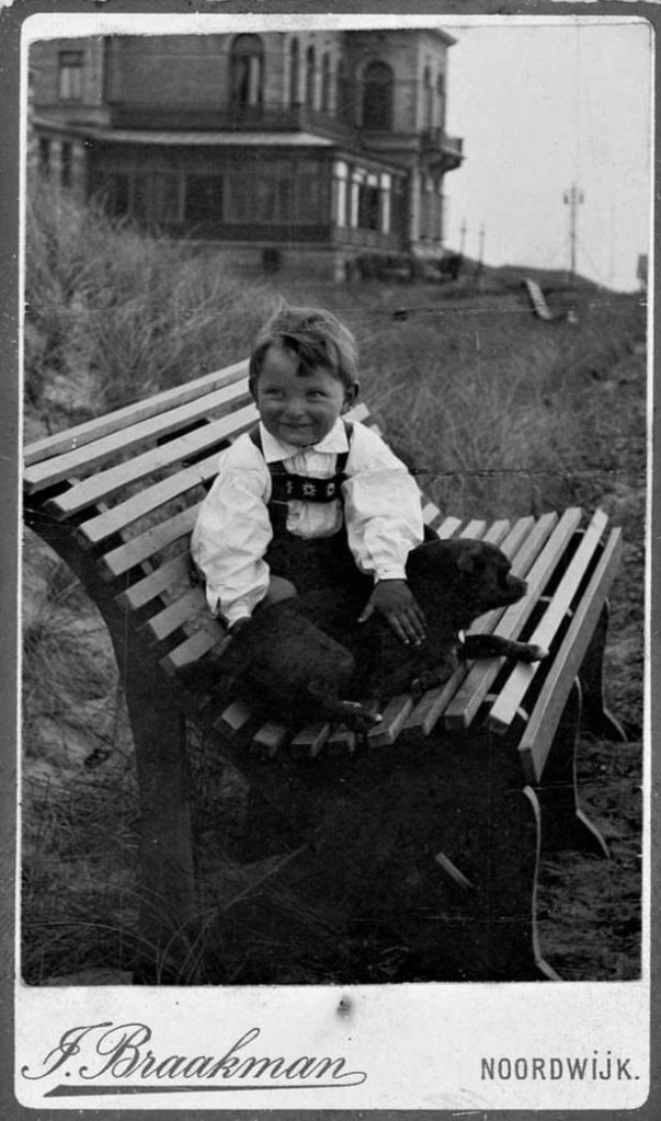 Deze foto kreeg ik aangereikt. Hij toont hem op jonge leeftijd op een bankje voor het Huis ter Duin van zijn ouders.