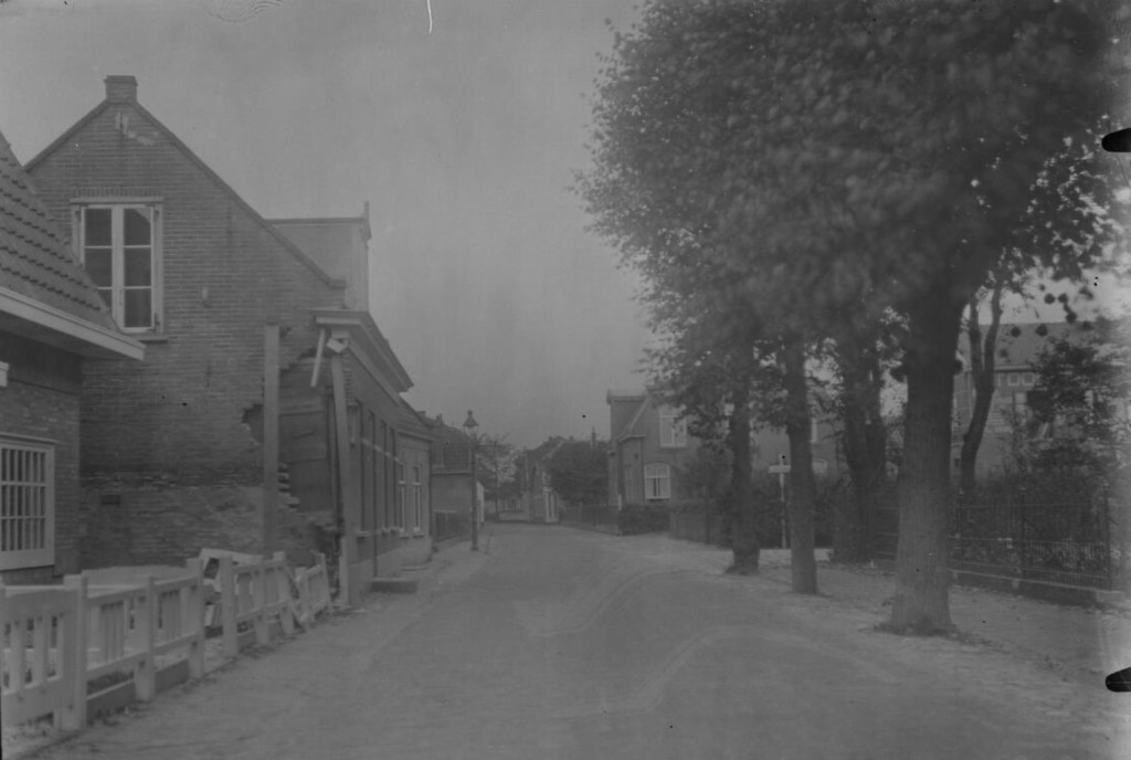 Met het huis links van het midden was wat aan de hand: het lijkt erop dat er een auto of bus tegenaan gereden was en en passant ook het hekje van de buren had meegenomen. Een ‘plaats delict’. De foto is dan ook afkomstig uit het politiearchief van de gemeente Noordwijk.