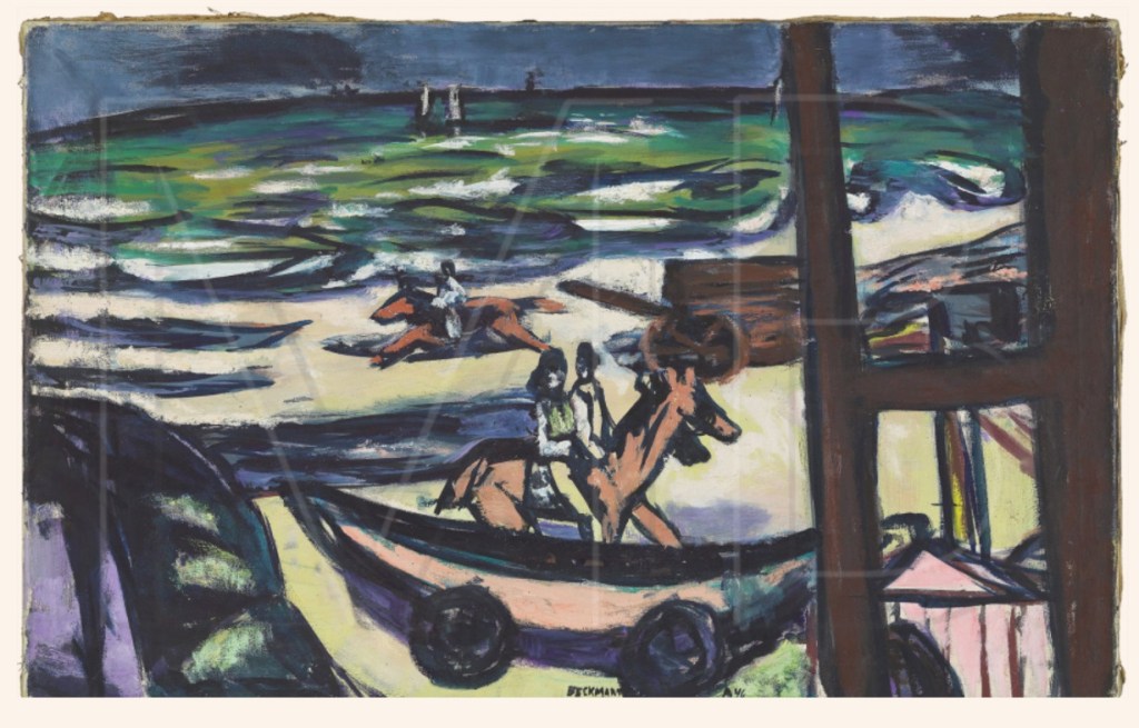 De Duitse expressionistische schilder Max Beckmann (1884-1950) moest in 1937 vluchten voor de nazi’s en kwam in Amsterdam terecht. Daar woonde hij tot 1947, waarna hij emigreerde naar de Verenigde Staten. Volgens zijn dagboekaantekeningen verbleef hij van 4 tot 9 september 1946 in Noordwijk, meer in het bijzonder ion Huis ter Duin. Vermoedelijk daar maakte hij deze twee prachtige schilderijen.