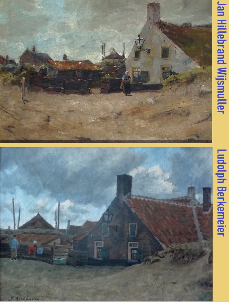 Jan Hillebrand Wijsmuller en Ludolph Berkemeier waren twee schilders die elkaar in Noordwijk troffen en nauw samenwerkten. De één leerde van de andere. Soms zaten ze op dezelfde plek te schilderen, zoals hier aan de (latere) Nic Barnhoornweg in Noordwijk aan Zee.