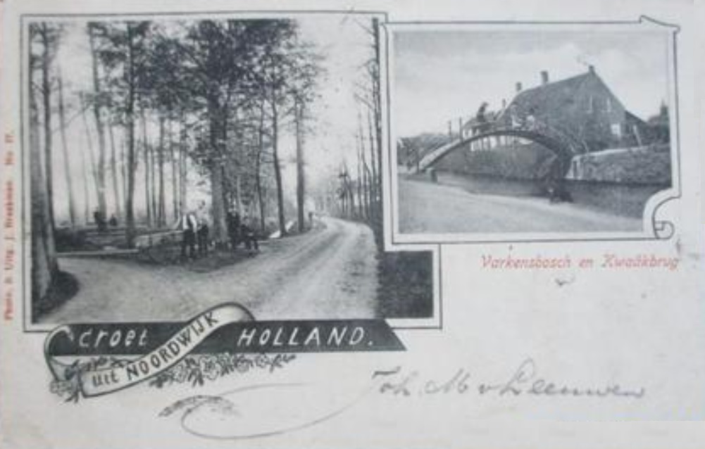 Een wat mij betreft ongekende fotokaart van de oude Braak. Ik stel me voor dattie in het Varkensbosch een foto geschoten had en vervolgens via de Hogeweg weer huiswaarts keerde. Andersom via de Lageweg was logischer geweest (was de kortste weg), maar misschien hoopte hij nog iets tegen te komen. Hij kwam inderdaad iets tegen: de ‘kwakel’ of de ‘kwaak’ over de Woensdagse Watering, die hij nu eens van een arre kant fotografeerde dan gewoonlijk.