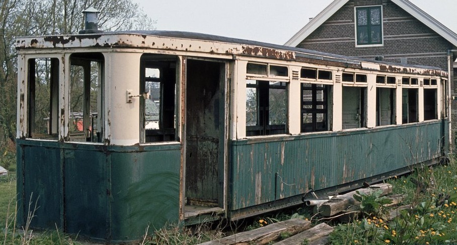 Ook de NZH verkwanselde wel eens wat (de meeste rijtuigen gingen in de hens). Maar tenminste één rijtuig overleefde de destructiewoede en kreeg een derde leven, zij het niet een erg verheffend leven (foto: De Oude Blauwe Tram):
