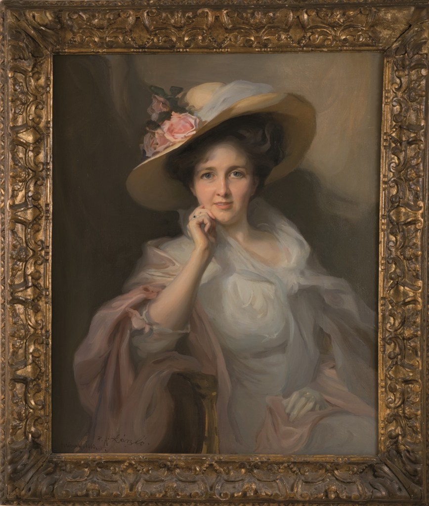 Prachtig portret van Johanna Ida gravin van Limburg Stirum née Randebrock (1889-1942) door de van oorsprong Hongaarse portret- annex societyschilder Sir Philip de László (1869-1937). Het schilderij maakt deel uit van de collectie van L. graaf van Limburg Stirum van Warmond, heer van Noordwijk en Offem (1882-1943). Het hing in 2006 op een speciale tentoonstelling over De László in Museum Van Loon in Amsterdam. De daarbij behorende catalogus (De Laszlo In Holland, Nederlanders geportretteerd door de internationale societyschilder Philip de László) is voor een eurootje of 7 nog te koop via bol.com.