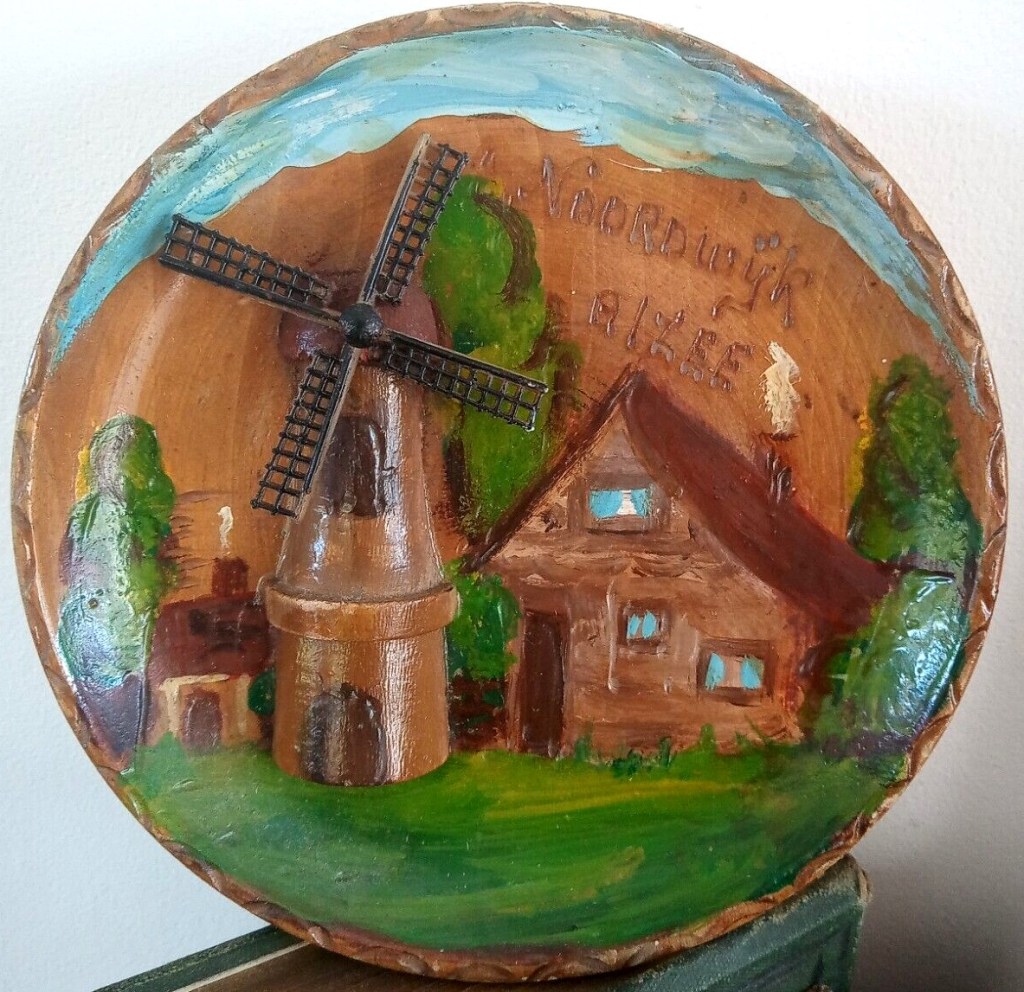 Soortgelijke houten bordjes verkochten wij vroeger al in onze winkel ( J. Van der Voet, Wigwam, Bomstraat). Kochten we in op de jaarlijkse souvenirbeurs in Utrecht.
