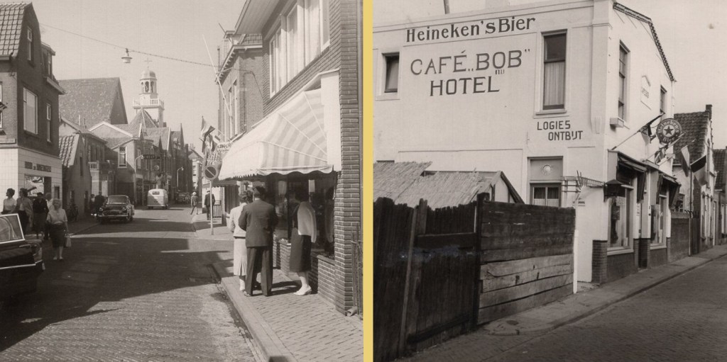 Mooie foto,s uit de sixtees…vw bus t1 in de verte richting wely…kwamen toen nog veel maand toeristen…zie een opel rekord en in de verte bij de caddy een zeldzame saab …lijkt mogelijk op dauphine …saab 93n…bob zonder oesterbar…wel schutting oude bomschuit planken…ernaast illuster huisje met trapgevel…later opslag toonen..huisje was zegt men van tuinder…the golden times…