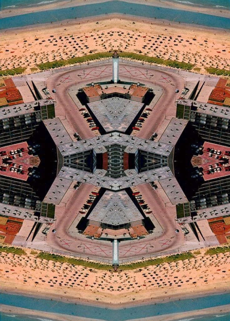 Een wat verknipte versie van het Vuurtorenplein, of liever gezegd en geschreven: een verknipte foto van het Vuurtorenplein: