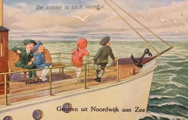 Van dit soort kaarten gingen er dertien in een dozijn. Als er een partij door een Noordwijkse middenstander werd ingekocht, werd er “Groeten uit Noordwijk aan Zee” opgedrukt. Een Katwijkse middenstander liet er in zo’n geval “Groeten uit Katwijk aan Zee” op drukken. Enzovoort, enzovoort.