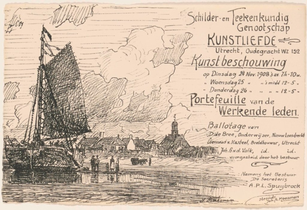 In het Centraal Museum in Utrecht bevindt zich deze uitnodiging voor een kunstbeschouwing van het Genootschap Kunstliefde in Utrecht. Om de uitnodiging enigszins in stijl op te leuken gebruikte men twee tekeningen van Ludolph Georg Julius Berkemeier. In Utrecht zou men die tekeningen wellicht niet helemaal thuis hebben kunnen brengen. In Noordwijk kon men dat ongetwijfeld wel.
