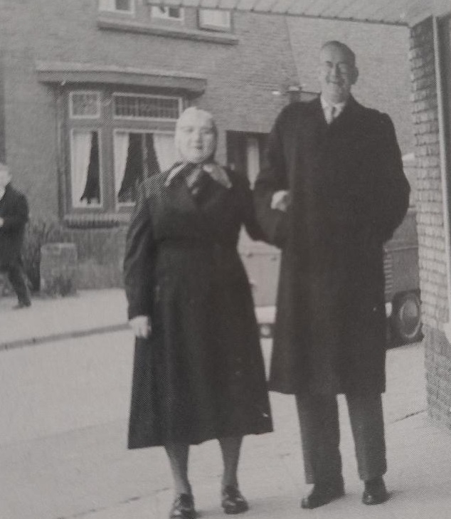 Cees – “Lange Cees Harmen” – Plug en Leuntje Duindam op de hoek van de Piet Heinstraat en de Quarles van Uffordstraat, gefotografeerd door Cees van der Niet. Over hen ging het versje: “Lange Cees en Korte Leun, ja die vrijen o zo sjeun” (bron: Noordwijkers bij naam en toenaam; Noordwijk Bijnamenboek van Ton Meijer en Cees van der Niet).