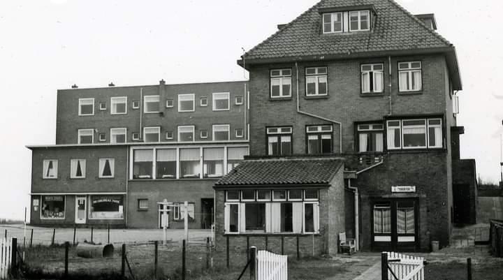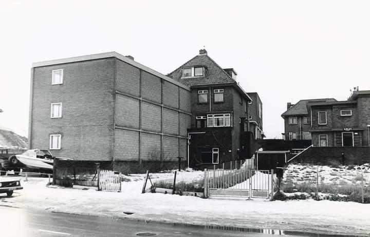 Villa ‘’t Noorden’ achter de inmiddels vrijwel gesneefde Zeeleeuw. Op deze plek werd later nog het motelcomplex Kleine Zeeleeuw aangebouwd, of liever ‘ingebouwd’ zoals onderstaande, nogal curieuze foto laat zien. De naam ‘ ’t Noorden’ staat vermeld op het witte bordje boven de deuren rechtsonder, dus de naam zal wel kloppen. Gek genoeg staat dezelfde villa op de foto-database van Erfgoed Leiden geafficheerd als ”t Zuiden’.