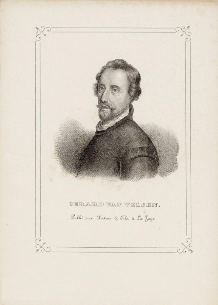 Gerard van Velsen, Heer van Velsen, Noordwijk en Kronenburg. Moordenaar van Floris V. Jaja. Ik heb over hem welderis eerder geschreven, maar kom nu weer een nieuw portret van hem tegen. Van Velsen figureert in de Gijsbrecht van Aemstel van Joost van de Vondel, maar er is ook een apart toneelstuk aan hem gewijd, geschreven door P.C. Hooft.