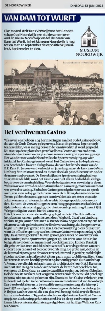 Een mooi verhaal van Kees Verweij in zijn onuitputtelijk mooie serie ‘Van Dam tot Wurft’. In De Noordwijker van 13 juni 2023
