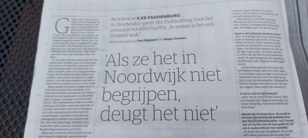 In de NRC van vandaag een groot interview met Ilke Paddenburg van ITA onder de kop “Als ze het in Noordwijk niet begrijpen, deugt het niet.” Omdat Ilke van Noordwijkse origine is, neem ik aan dat die uitspraak als compliment is bedoeld.