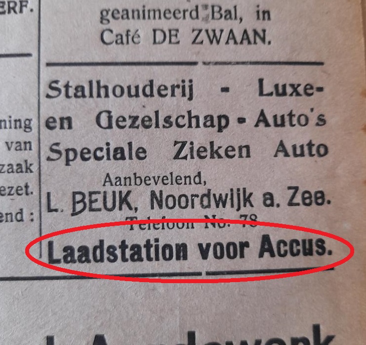 Ik weet niet of Leen Beuk een laadpaal voor de deur had staan aan de Jan Kroonsweg, maar zeker was dat je al in 1928 bij hem elektriciteit kon ‘tanken’ voor je accu. Beuk was op een verre toekomst voorbereid