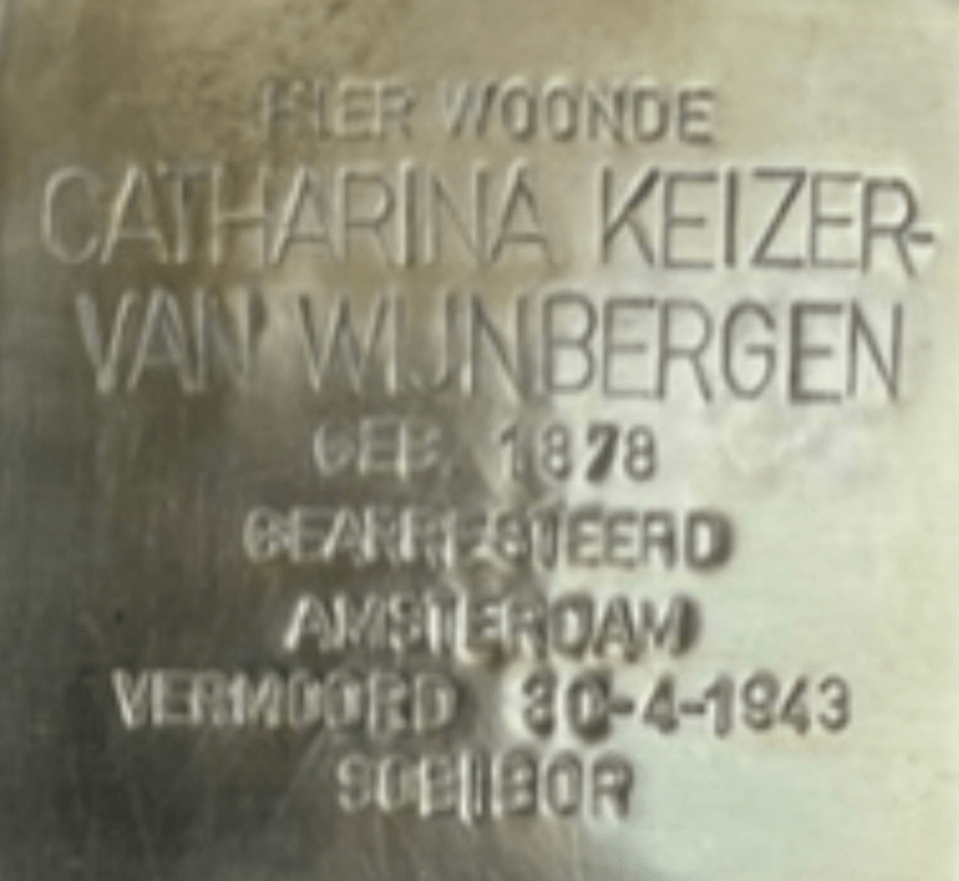 Catharina van Wijnbergen (16 juni 1878-30 april 1943) was de dochter van de Noordwijkse schoenmaker Jacob van Wijnbergen (1849-1914) en Benvenida Bellinfante (1850-1917). Ze trouwde met ene David Keizer (1875-1943) en samen met hem woonde ze op het adres Oosterpark 47 in Amsterdam. Vanwege hun Joodse identiteit werden ze door de Duitse bezetter opgepakt en op transport gesteld naar het vernietigingskamp Sobibor. Daar werden ze op 30 april 1943 om het leven gebracht.