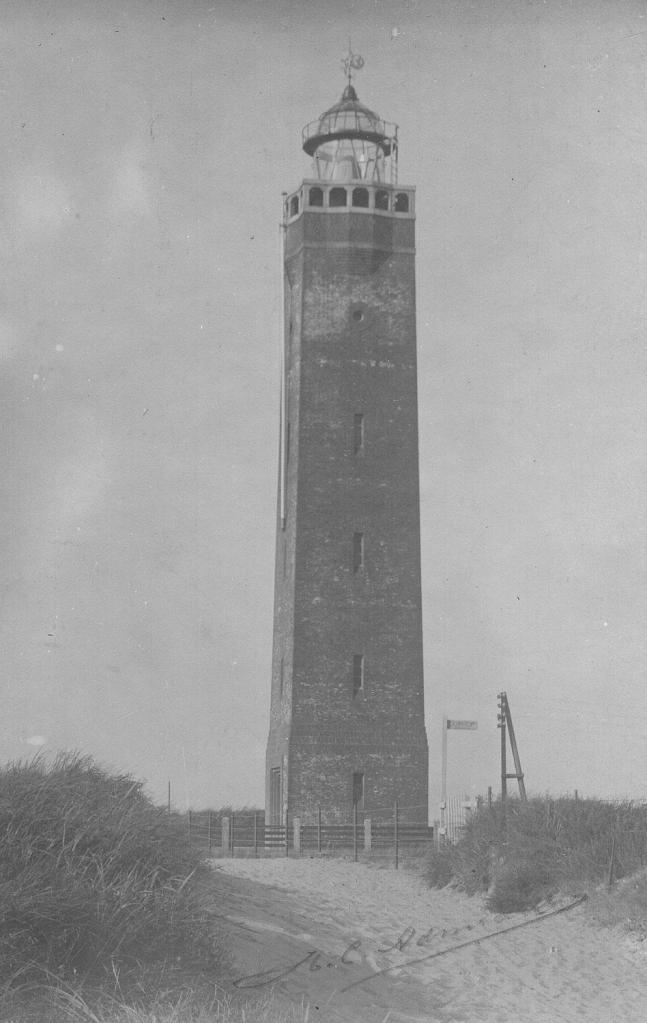Naar aanleiding van een vorig blog over de 100e verjaardag van de vuurtoren krijg ik ter vergroting van de feestvreugde nog twee mooie prenten aangereikt. Hierboven een prent van Leon Senf (met dank aan Willem) en hieronder een stemmige – gesigneerde – foto van H.C. Admiraal (‘Adfono’) (met dank aan Jaap). Op beide prenten bezit de vuurtoren nog zijn bakstenen jas.