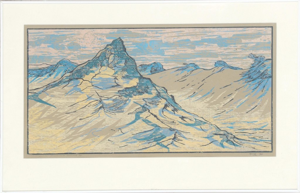 Op het eerste gezicht zou je denken dat het hier om een afbeelding gaat van een onbesneeuwde Jungfrau. Maar het beeld is er een van de duinen in het Langeveld in Noordwijk. Kunstenaar: Johannes – ‘Joop’ – Martinus van Egmond (1943-2018).