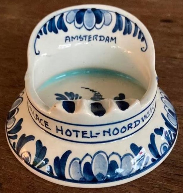 Een omgekeerde, verporceleinde uniformpet moest voor de hotels Doelen in Amsterdam en Palace in Noordwijk fungeren als asbak. De tijden dat je een asbak nog als reclame-gimmick kon beschouwen.