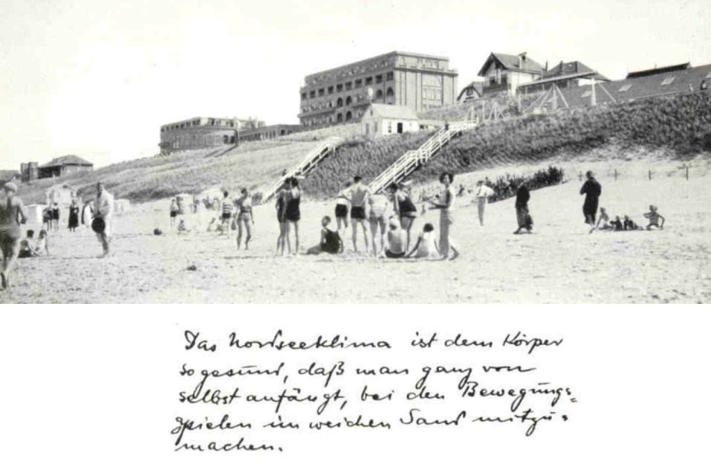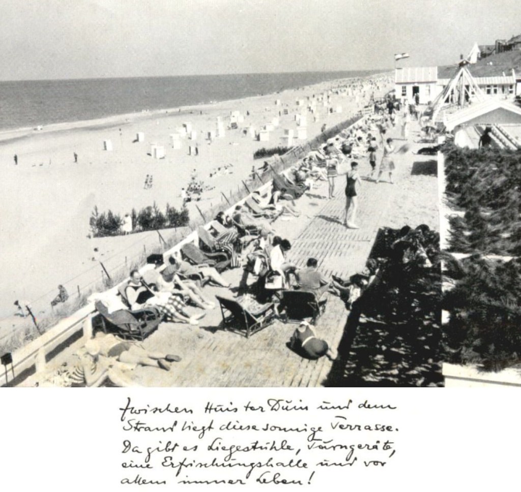 De bovenste foto met het lange terras ,…staat in het boek honderd jaar htd…gastvrijheid,…1906 geven ze op,…maar denk 1932 omtrent,…dan viel op een tweede strandtent voor huis aan zee/strandwijck…met zeebad vlag,…nooit gehoord,…dan voor de tenten en achter lig terras afgezaagde dennen takken voor zand stuiven tegen te gaan,…badman voor gewichtheffen in deur opening,…een korbee,…mijn vader werkte er in twentees,…2e strandtent reeks delcampe,…