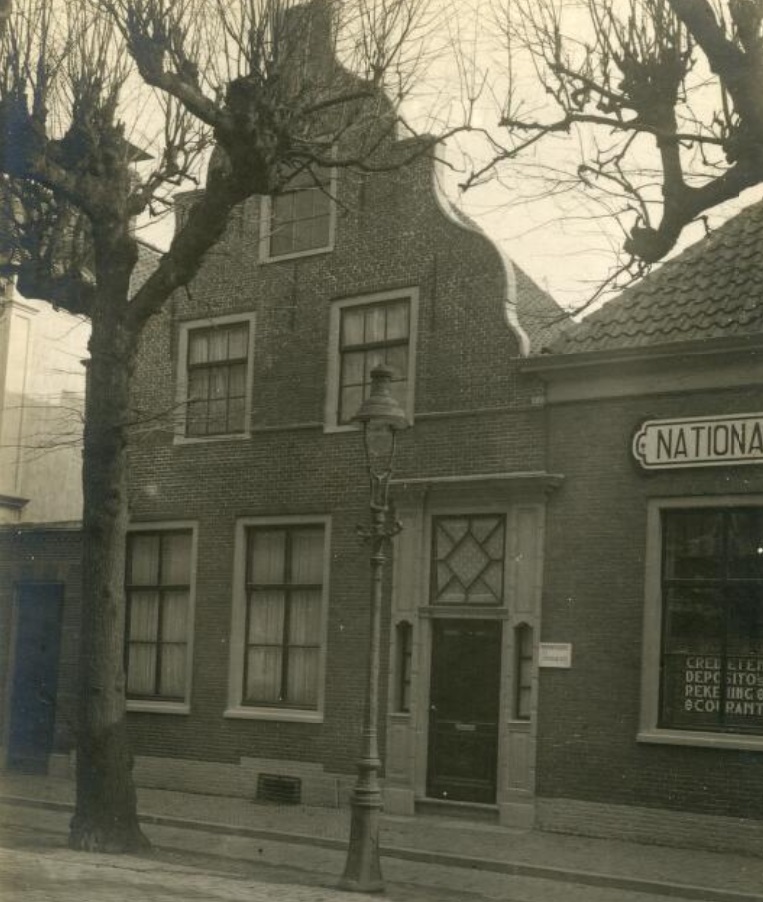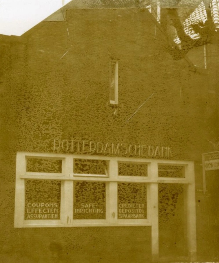 De foto staat vermeldt op Erfgoed leiden als zijnde afkomstig uit het jaar 1928 en afbeeldend ‘de spaarbank’. Maar welke spaarbank dat dan was? Deze foto is genomen aan de Oosteinder Voorstraat iets voorbij het Raadhuis. De ‘Spaarbank voor Noordwijk en Omstreken’ stond hier bij mijn weten aan de overkant van deze bank, want op deze plek werd of wás gevestigd de ‘Rotterdamsche Bank’, die later in een nieuw jasje moet zijn gehesen: