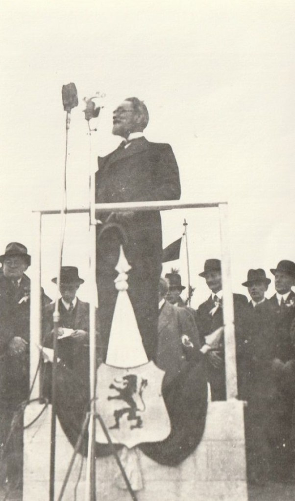 NOTABENE 2 De foto met de gedreven sprekert is genomen op 20 augustus 1936 toen de Zuidboulevard werd omgedoopt tot Koningin Astridboulevard. De sprekert is Meester De Boer die op de één of andere manier bij deze omdoping betrokken was (eveneens met dank aan Willem).