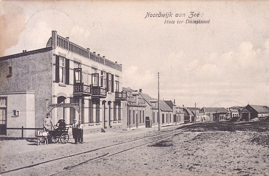 De Huis ter Duinstraat met links een poort met daarop vermeld: “Verboden toegang voor rij- en voertuigen.” Nu is een rijtuig natuurlijk ook een voertuig dus dat is een beetje dubbelop. Maar goed, ook de bokkenwagen mocht niet verder en hield halt.