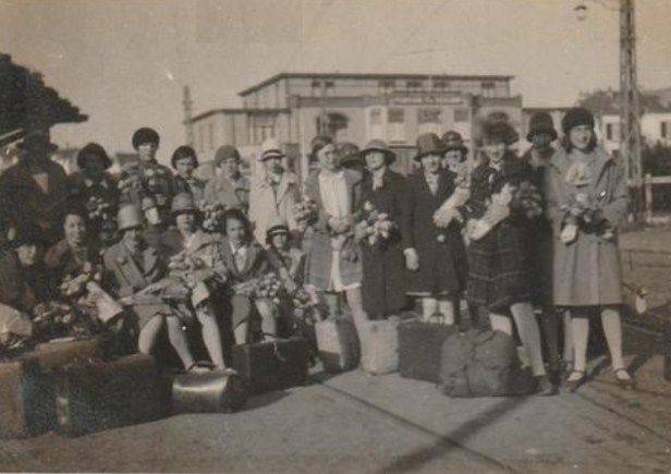 Een ongedefinieerd gezelschap dames, gefotografeerd op het tram- annex busstation op het Picképlein. Wat de achtergrond van e.e.a. is, wie ze waren en waar ze naar toe gingen? Ik weet het niet. Ze kregen wel allemaal een bosje tulpen mee.