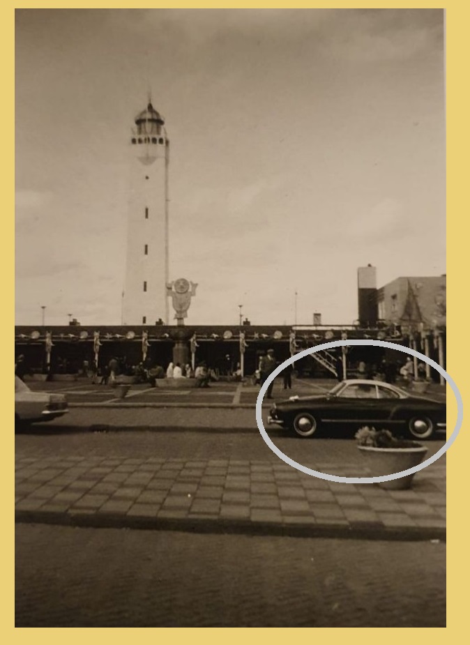 Een oudje van het Vuurtorenplein met daarop een wat mij betreft iconisch voertuig: de Volkswagen Karmann Ghia. De auto werd aangedreven door een 30 pk luchtgekoelde boxermotor die ook in de Volkswagen Kever zat. Deze motor was niet sterk genoeg voor een echte sportwagen, en de Karmann Ghia haalde een topsnelheid van slechts 115 km/u. Maar het geluid van de motor alleen al ….. En dan was het niet eens een echte Volkswagen, want lees wat er in de Wikipedia over geschreven is: