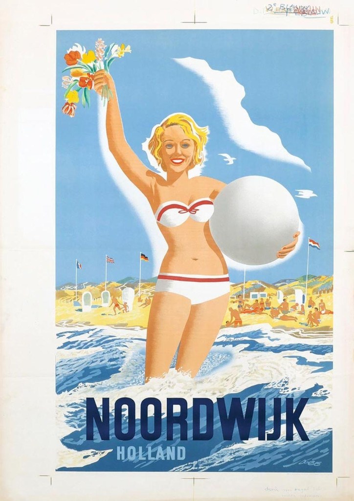 De poster is hier wel vaker langsgekomen. Maar nu duikt hij op een veiling via invaluable.com. Geschatte opobrengst zo’n €700. Het is dan ook een poster ontworpen door Eppo Doeve, vermaard tekenaar/illustrator/boekbandontwerper. Of, en zo ja, welke Noordwijkse schone hier model voor heeft gestaan weet ik niet.