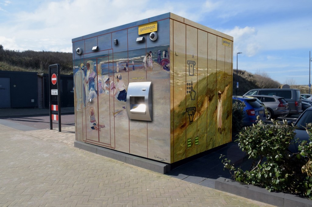 De gemeente Noordwijk heeft een oproep gedaan voor het oppimpen van de geldmaat die aan het Palaceplein moet komen te staan. Voorwaar een mooi idee, misschien analoog aan de veelheid aan opgepimpte trafohuisjes in Den Haag. Nieuwe inzendingen worden nog ingewacht, maar deze (van Jos) is wat mij betreft alvast een kanshebber: een Liebermanniakale versie van de geldmaat!