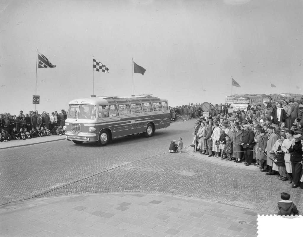Op 3 mei 1956 werd in Noordwijk aan Zee een zgn. ‘Concours d’Elegance Autobussen’ gehouden. Nou ja, concours…. Zo’n wedstrijd was het niet want het was de firma Beuk uit Noordwijk die voor de derde (!) achtereenvolgende keer de Prix de Concours won. Thuisvoordeel zammemazegge. ‘Van Doorne’s Automobielfabriek N.V. te Eindhoven ging er ook nog met een medalje vandoor en er kamen veel mensen kijken: