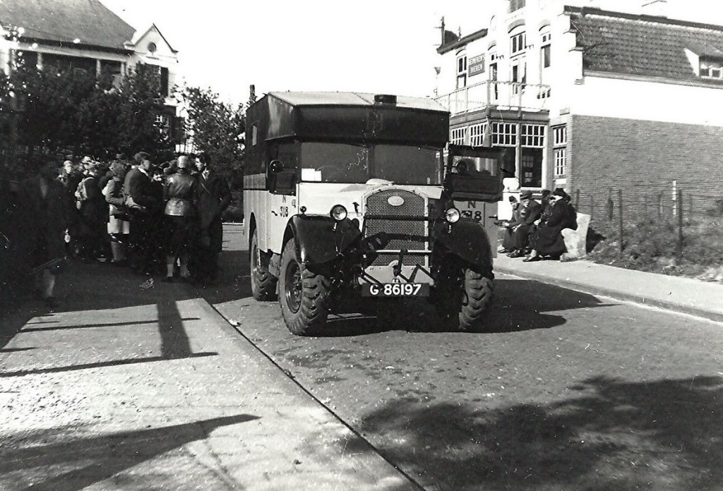 Om precies te zijn, het was een tot bus omgebouwde Fordson type WOT, een heerlijk “klein” vier wiel aangedreven vrachtwagentje. Mijn vader had er in mei en juni 1945 een te leen van de Royal Engineers aan wie hijzelf uitgeleend was. (Toon Steenmeijer)