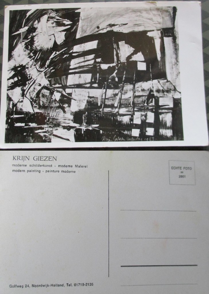 Werk van Krijn Giezen van augustus 1963. Uit gegeven op een ansichtkaart, die Krijn himself blijkbaar in eigen beheer uitgaf. Met adres en telefoonnummer erbij.