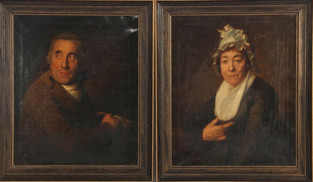 Dubbelportret door een onbekende schilder van Gerard van der Zoo en diens eega Agatha Giesken. Gerard was er niet zo maar één: hij was Leienaar van geboorte (1743) en Noordwijker van doodgaan (1826). In de tussentijd was hij onder meer lid van de Eerste Nationale Vergadering, van 1 maart 1796 tot 1 september 1797 (voor het district Nieuwersluis), lid van de Eerste Kamer, Vertegenwoordigend Lichaam, van 29 juli 1800 tot 17 oktober 1801 (voor het district Nieuwersluis), voorzitter van diezelfde Eerste Kamer, Vertegenwoordigend Lichaam, van 11 augustus 1801 tot 25 augustus 1801 en tenslotte lid van het Wetgevend Lichaam, van 2 november 1801 tot 7 maart 1804 (voor Holland). Hij woonde aan het einde van zijn leven in Noordwijk op het adres Over de Linden 116 (ik kan niet goed duiden waar dat precies was, Lindenplein?). Zijn vrouw Agatha Giesken stierf al eerder, in Maarssen in 1815. Vermoedelijk kwam Gerard daarna pas naar Noordwijk, maar ik weet niet waarom.