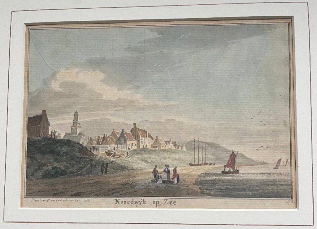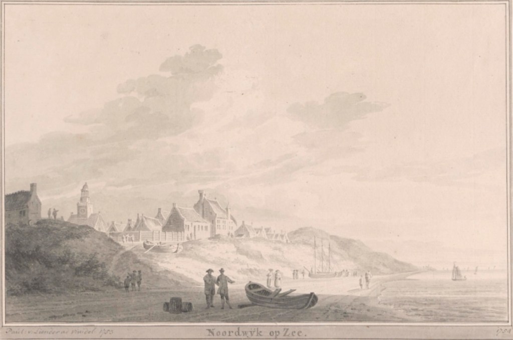 Ik heb ze allebei al eens eerder aan de hand gehad, maar niet in onderling vergelijk. Een afbeelding van de aquarel (‘Zicht op Noordwijk aan Zee’) hierboven van Paulus van Liender (1731-1797) kreeg ik gisteren toegestuurd van Tom. Met dank aan hem spoorde dat mij weer eens aan om achter die Van Liender aan te gaan. En toen stuitte ik op een vrijwel identieke afbeelding, ook van Van Liender, in het bezit van het Centraal Museum in Utrecht. Niet als aquarel, maar als penseeltekening in grijze inkt op papier.