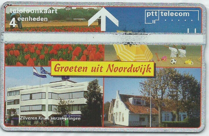 Een telefoonkaart als deze is eigenlijk alleen nog maar een verzamelobject. Bruikbaar zijn ze volgens mij niet meer. Het was een kaart waarmee je in openbare telefooncellen de gesprekskosten kon betalen zonder muntgeld op zak te hebben. Er waren ook opwaardeerkaarten waarmee je beltegoed voor een mobiele telefoon kon opladen. Vandaag de dag zijn er = als gevolg van de opkomst van mobiele telefonie = vrijwel geen openbare telefooncellen meer, dus zo’n kaart is rijkelijk overbodig geworden. Je kon er overigens wel reclame mee bedrijven, maar dat gebeurde welderis ongerijmd: wordt hierboven nu reclame gemaakt voor Zilveren Kruis Verzekeringen of voor Noordwijk?