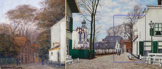 Begin vorige eeuw schilderde Leo Klein Diepold het begin van de toenmalige Gooweg, ongeveer vanaf de Pietersbrug over de Dinsdagse Wetering. Vele tientallen jaren later nam Rob van Assen hetzelfde beeld voor zijn rekening vanuit een wat breder perspectief (en vanaf een foto die hij op zijn schildersezel al voorbeeld nam).