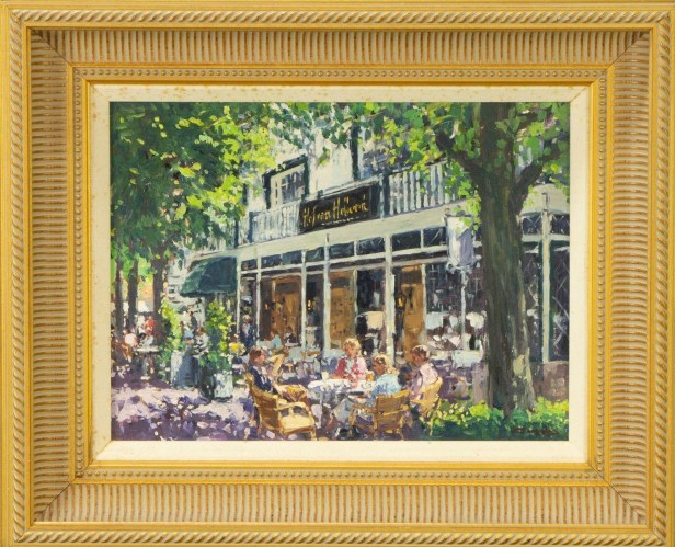 Prachtig schilderij van de Katwijkse kunstenaar Niek van der Plas, van wie we wel eens vaker hier iets hebben laten zien. Van het aloude Hof van Holland aan de al even aloude Voorstraat in Noordwijk Binnen. Dezer dagen in veiling gebracht bij het Leidse veilinghuis “Onder de Boompjes”.