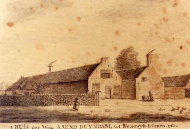 De afbeelding van het huisje van de weduwe van Arend Duyndam stond volgens het onderschrift in Noordwijk Binnen. Maar waar? Dat heeft Cor Warmenhoven blijkbaar ook niet kunnen uitvlooien.