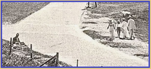is het gezinnetje rechts van het midden dat in zomerkleren pensionwaarts wandelt. Wat die man midden onder in de berm doet met die omgevallen fiets is een raadsel.