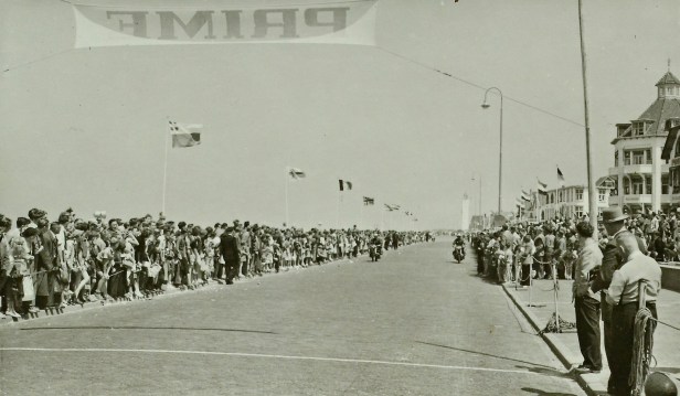 Veel belangstellenden in afwachting van de komst van het peloton. Tour de France en de renners kwamen door Noordwijk op weg naar België. Op de Koningin Wilhelminaboulevard lag de streep voor een tussensprint. Die zou gewonnen worden door Roger Hassenforder. We schrijven 8 juli 1954.