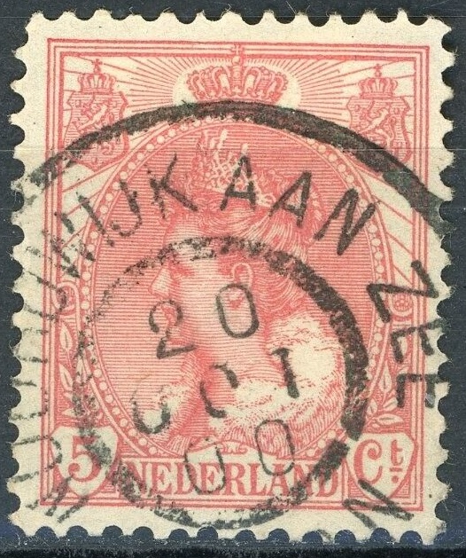 De postzegel werd vandaag precies 124 jaar geleden afgestempeld in Noordwijk aan Zee, Waar de bijbehorende brief of kaart heen ging, weten we niet, want die brief of kaart zat er niet bij.