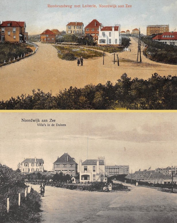 Twee beelden van de driesprong Rembrandtweg/Erasmusweg/Oude Zeeweg nog voordat op die plek het oorlogsmonument werd geplaatst. Toen de foto’s werden gemaakt was de oorlog immers nog ver weg.